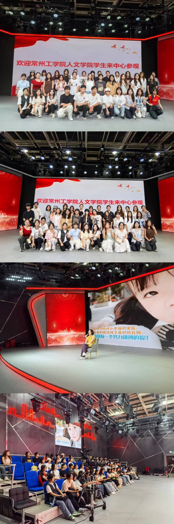 在传媒中心工作人员引导下,师生先后参观了常州传媒演播大厅、融媒体指挥中心、MCN直播中心。