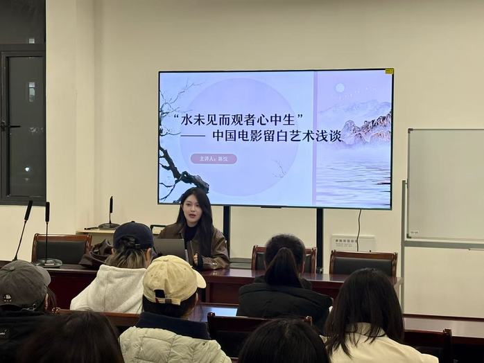 陈悦以“中国电影留白艺术浅谈”为主题,从东方美学传统的角度解读中国电影留白艺术的核心定义,围绕镜头、音乐、语言、情节四大维度,详细解析了留白的具体表现,并运用具体案例阐释了留白艺术在提升影片审美格调、增强叙事层次、深化影片主题等方面的独特功能。结合当代影视现状,她分享了对留白艺术传承与创新的一些深刻思考,强调留白的精髓在于“适度把控”,唯有恰当运用,才能真正发挥其美学价值。讲座尾声,陈悦将电影留白与人生哲学巧妙联结,指出电影留白赋予故事悠长韵味,而人生中的“留白”亦是一种处世智慧。适当留白既是对生活节奏的精准把控,也是为成长预留的巧妙伏笔。