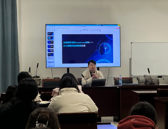 12月4日,“人文夜语”系列讲座第十讲在元任楼A115教室如期举行。本次讲座邀请了建设银行华东研修院人工智能培训师安师墨作为主讲人,为人文学院汉语言文学及秘书学专业的学生带来了题为“从深度学习到Transformer架构:AI大模型与自然语言处理”的专题讲座。