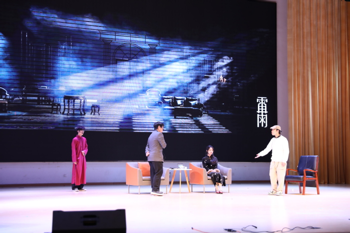 活动在乐声中拉开序幕,唱奏表演,情感真挚,以动人旋律迅速点燃现场氛围。比赛主体环节精彩纷呈,充分展现人文学子的艺术创造力与舞台表现力。青果戏剧社表演了经典剧目《雷雨》片段,同学们凭借精致的服饰妆造、细腻的人物刻画和扎实的台词功底,将复杂人物关系与戏剧冲突展现得淋漓尽致,彰显了较高的剧本驾驭能力。随后,参赛班级团队竞相献艺,25汉一班与25编一班演绎《金陵十三钗》与《风声》,剧情扣人心弦,表演富有张力;25汉二班与25编二班则分别呈现西方经典《茶花女》与悬疑喜剧《八个女人》,透视中西戏剧文化的对话与交融;25秘班以《谁杀死了周日》,从日常生活汲取灵感,用风趣幽默的方式剖析现代人的拖延状态,引发观众的共鸣。整场比赛演出题材丰富,风格多元,同学们投入的表演赢得了阵阵掌声。
